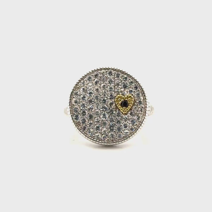 This Judith Ripka ring combines the timeless elegance of sterling silver with the luxurious warmth of 18K gold, accented by carefully set diamonds. Its expert craftsmanship ensures a refined balance of durability and sophistication, making it a versatile piece that enhances both everyday and special occasion looks. The blend of precious metals and sparkling diamonds offers lasting beauty and a distinctive style statement.